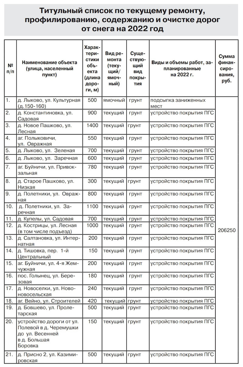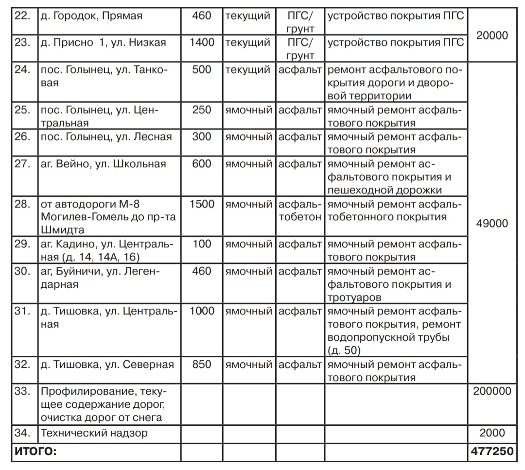 Дорожный ремонт улиц в Могилевском районе в 2022 году (Список)