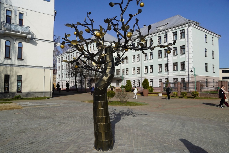 Это уже третье кованое дерево на пешеходной Ленинской. Первое – яблоньку – установил напротив гимназии №3 Могилевский мусороперерабатывающий завод.