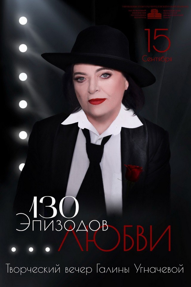 А 135-й театральный сезон 15 сентября откроет творческий вечер одной из любимых актрис– Галины Угначевой. За 55 лет на сцене могилевского театра она воплотила множество образов. Своеобразный коллаж из эпизодов спектаклей, в которых играла и играет Галина Угначева, и одновременно ее исповедь представят зрителю в творческой программе «130 эпизодов любви», над которой работает режиссер Михаил Лашицкий. Начало спектакля — традиционно в 18.30.
