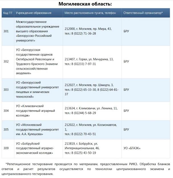 В Могилевской области РТ можно пройти на базе учреждений образования, где организованы пункты репетиционного тестирования. Их шесть .