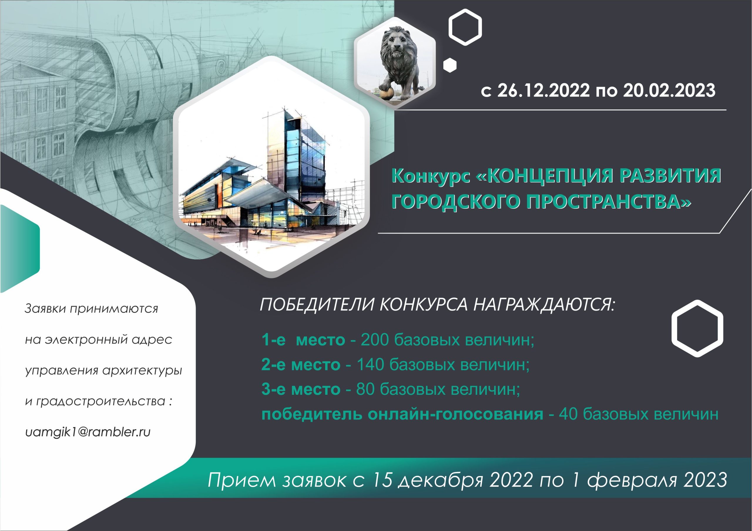 Управление архитектуры и градостроительства Могилевского горисполкома приглашает принять участие в конкурсе «Концепция развития городского пространства». Творческое состязание проводится в 2 этапа с 26 декабря 2022 года по 20 февраля 2023 года.