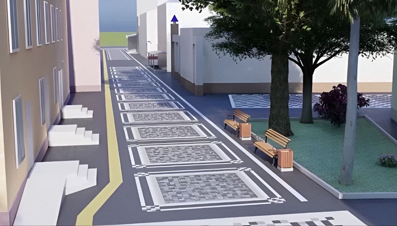 Еще одной отличительной чертой обновленной улицы станет необычный орнамент, который выложат на тротуаре. Для этого будет полностью демонтировано старое покрытие и уложено около 5000 м² новой плитки.
