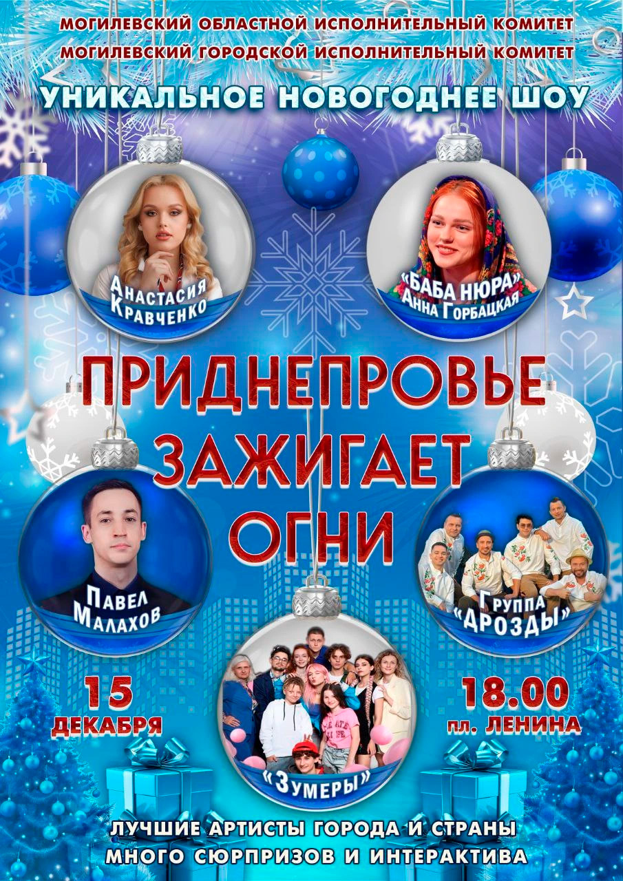 Организаторы подготовили для гостей и жителей Могилёва обновлённый формат праздника. Программа объединит зимнюю сказочную атмосферу, актуальные молодёжные тенденции и патриотические мотивы. На сцене выступят популярные у молодёжи артисты и медийные персонажи.