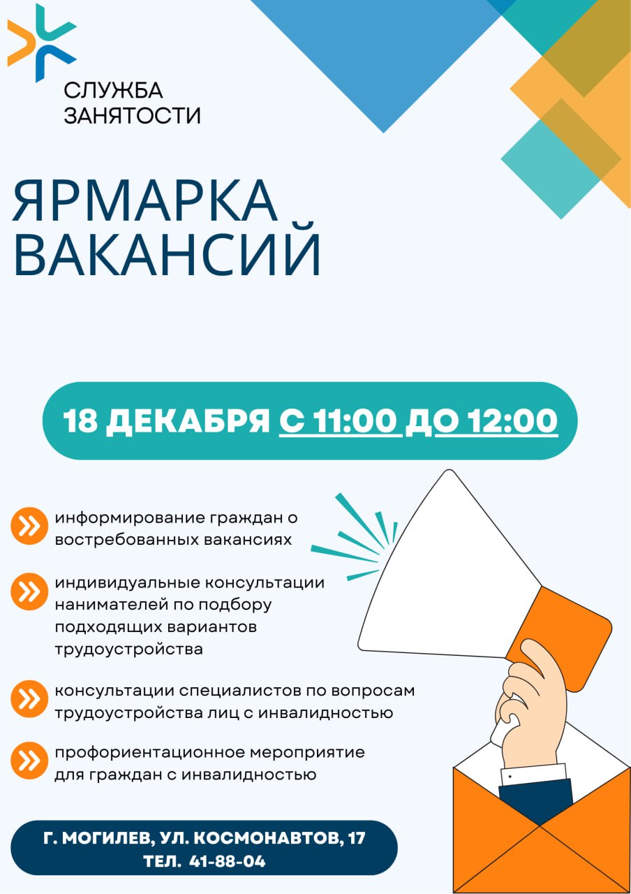 Ярмарка вакансий для безработных и граждан, находящихся в поиске постоянной работы, состоится в Могилеве в четверг, 18 декабря.