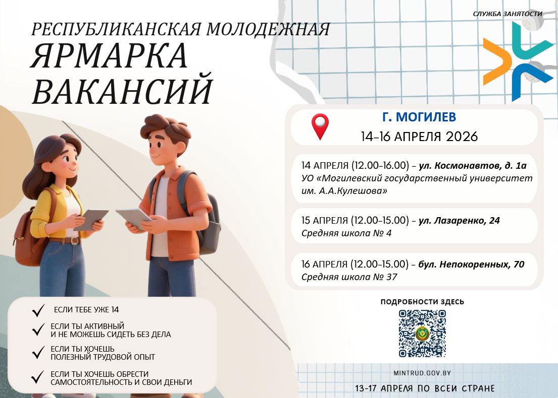 Молодежная ярмарка вакансий состоится в Могилеве 14-16 апреля