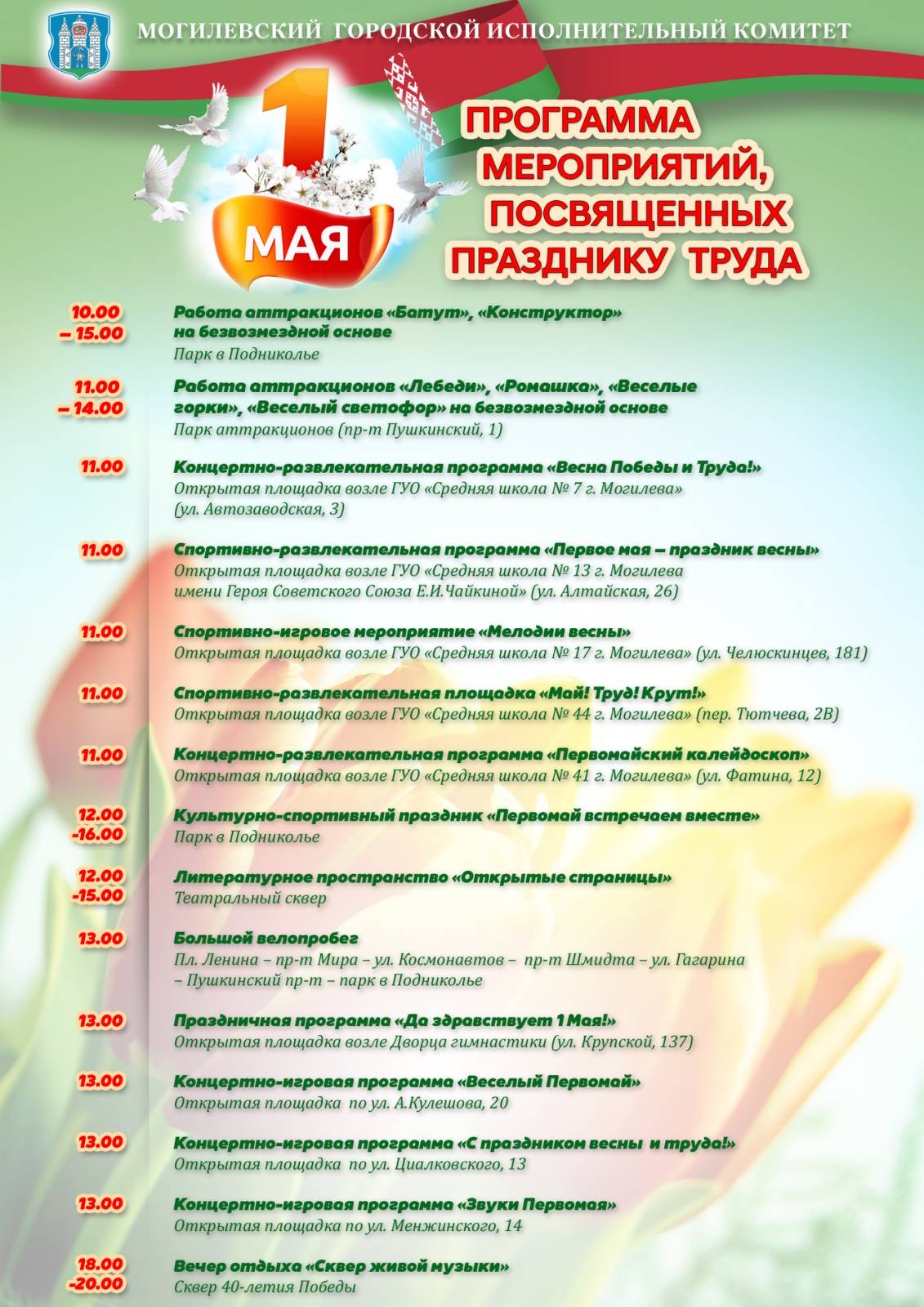 Программа мероприятий в Могилеве, посвященных 1 Мая